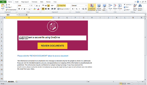Pósturinn sjálfur inniheldur engan ritaðan texta, aðeins Excel skjal sem titlað er sem reikningur eða invoice.